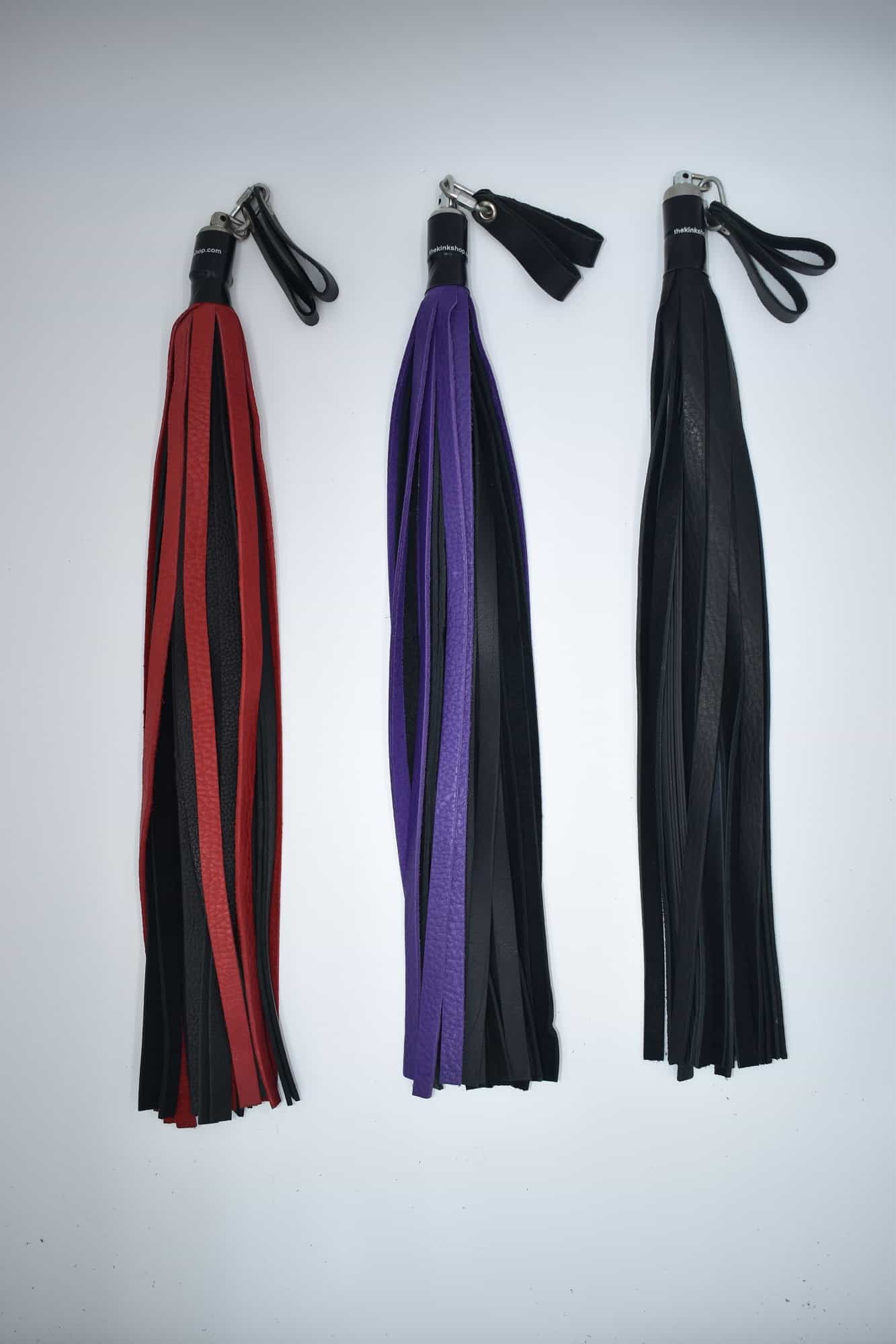These Bull Hide leather floggers come in 3 different colors as well as the option to purchase our “combo” flogger which has the rubber tails in the middle for an enhanced sensation during the swing.