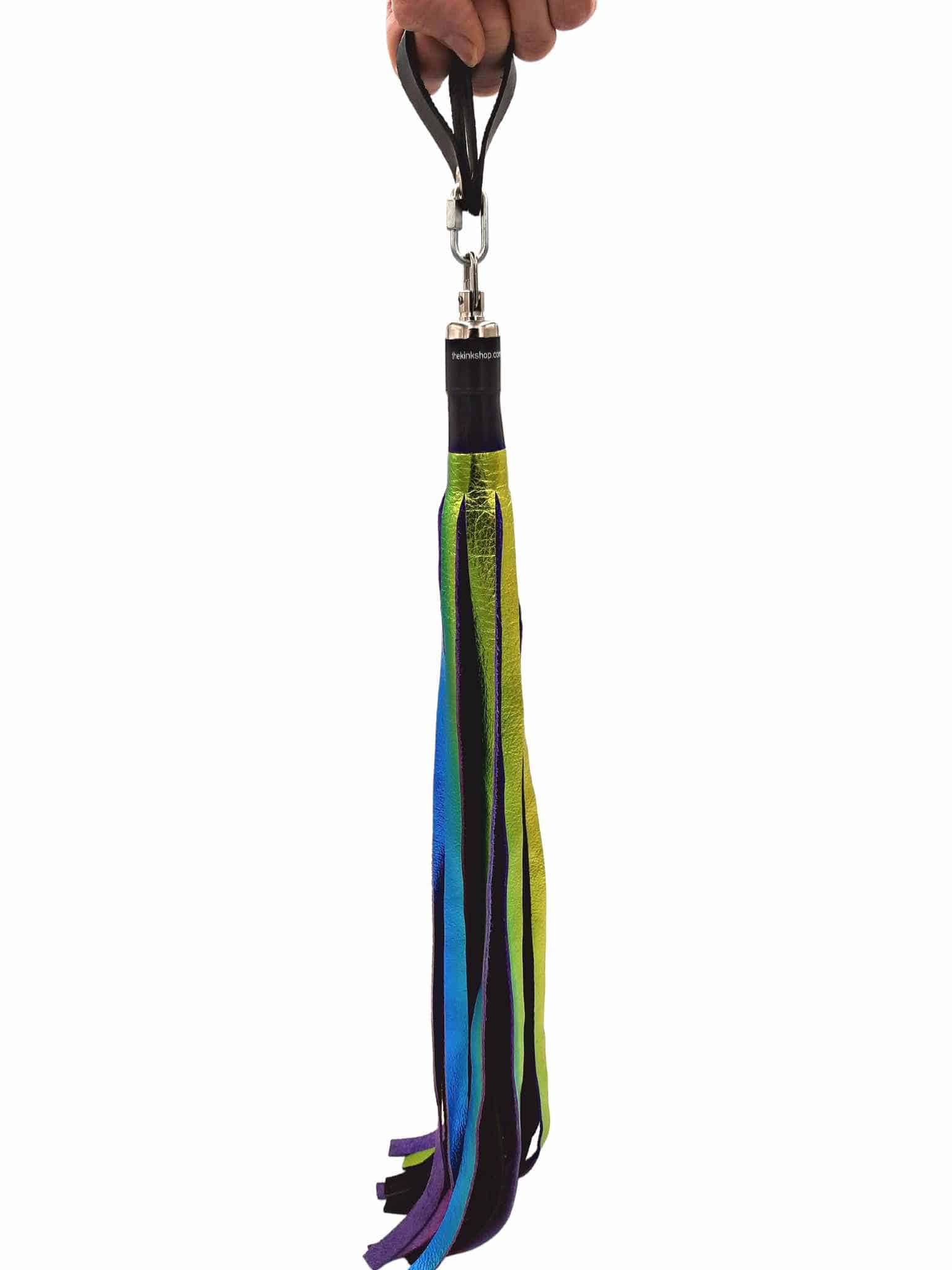 These beautiful metallic leather floggers are always a hit at our road shows. Our customers love them because of the extra flair it brings to the kink scene, plus they are just nice to look at!