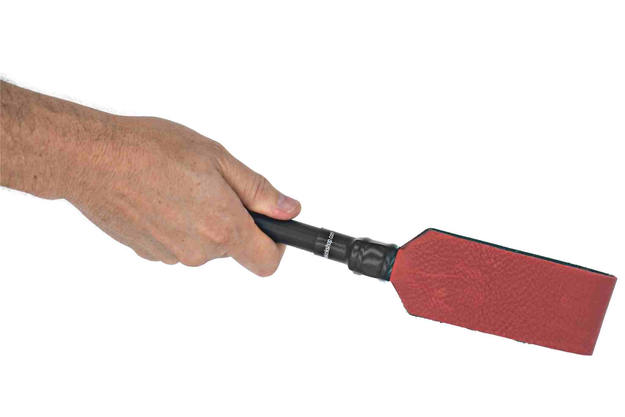 Our short crops are a perfect fit for those that don’t want the stingy impact, but do want a loud impressive pop! The crop has 2 six-inch pieces of bull hide that are joined together at an angle just right for a loud impact sound. These are perfect for those scenes where you want to put on a show or make some noise. It builds a great anticipation factor. These crops can leave red marks on the skin after intense or prolonged use.